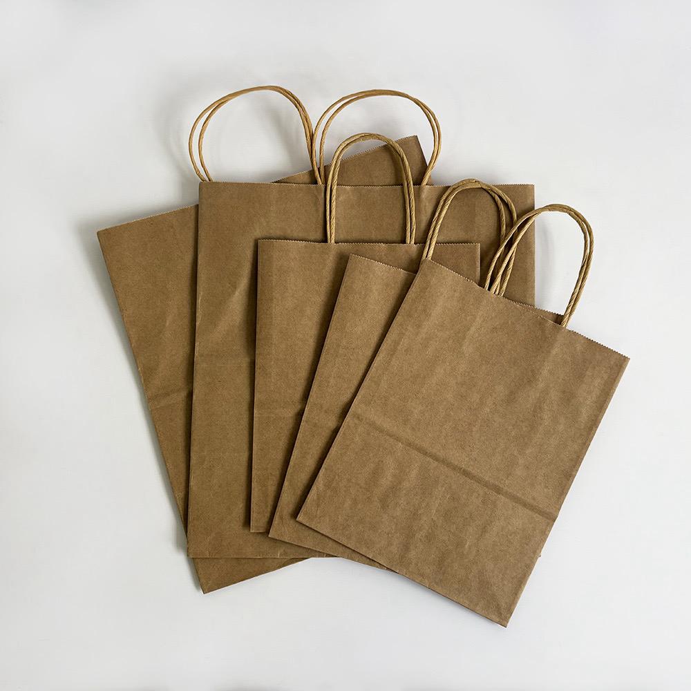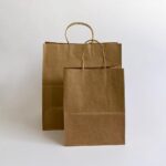 Shopper in carta kraft naturale, resistente e riciclabile. Disponibile con manici ritorti o piatti, ideale per negozi alimentari, panetterie, take-away e negozi al dettaglio.